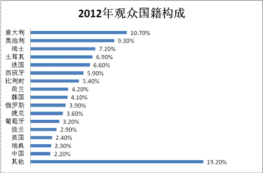 l 2012年觀眾數量:共計來自92個國家的55965位觀眾