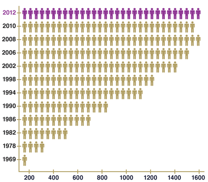 1969 – 2012觀眾數量數據表