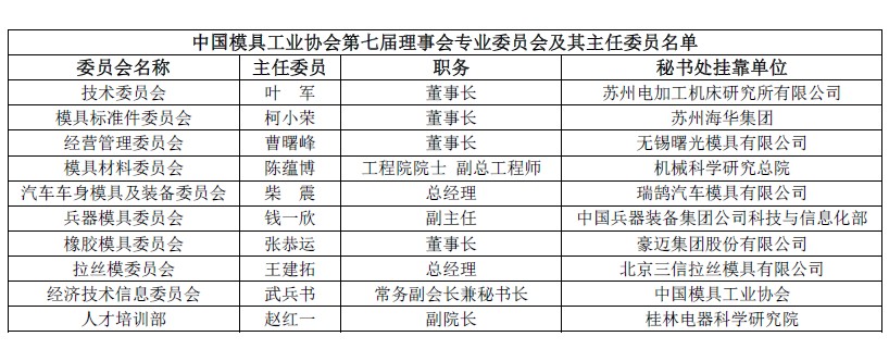 中國模具工業(yè)協(xié)會第七屆理事會專業(yè)委員會及其主任委員名單
