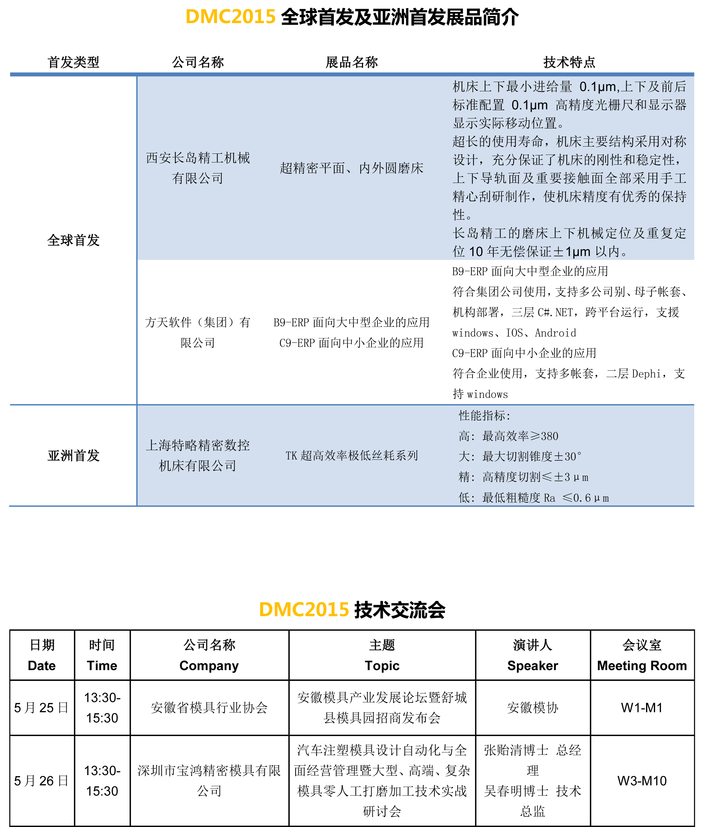 DMC2015全球首發(fā)及亞洲首發(fā)展品簡(jiǎn)介、技術(shù)交流會(huì)