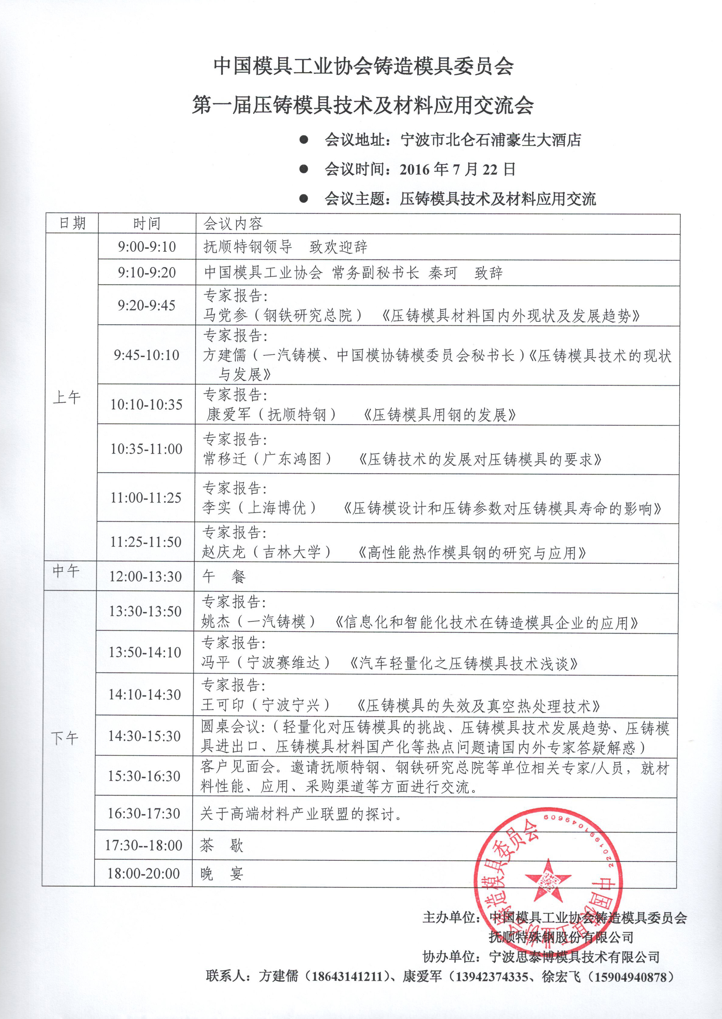 中國模具工業(yè)協(xié)會鑄造模具委員會第一屆壓鑄模具技術(shù)及材料應(yīng)用交流會