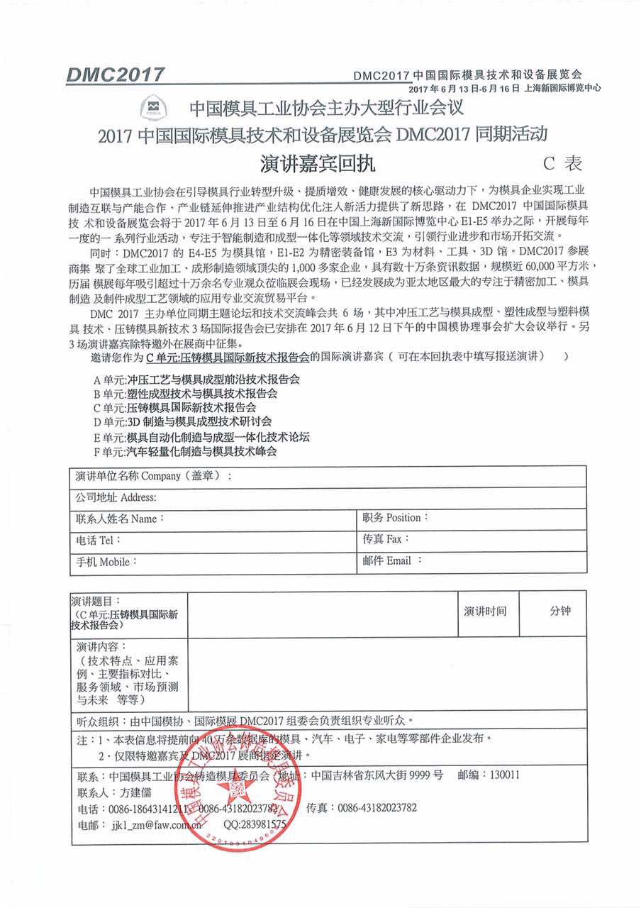 DMC2017同期活動 演講嘉賓回執
