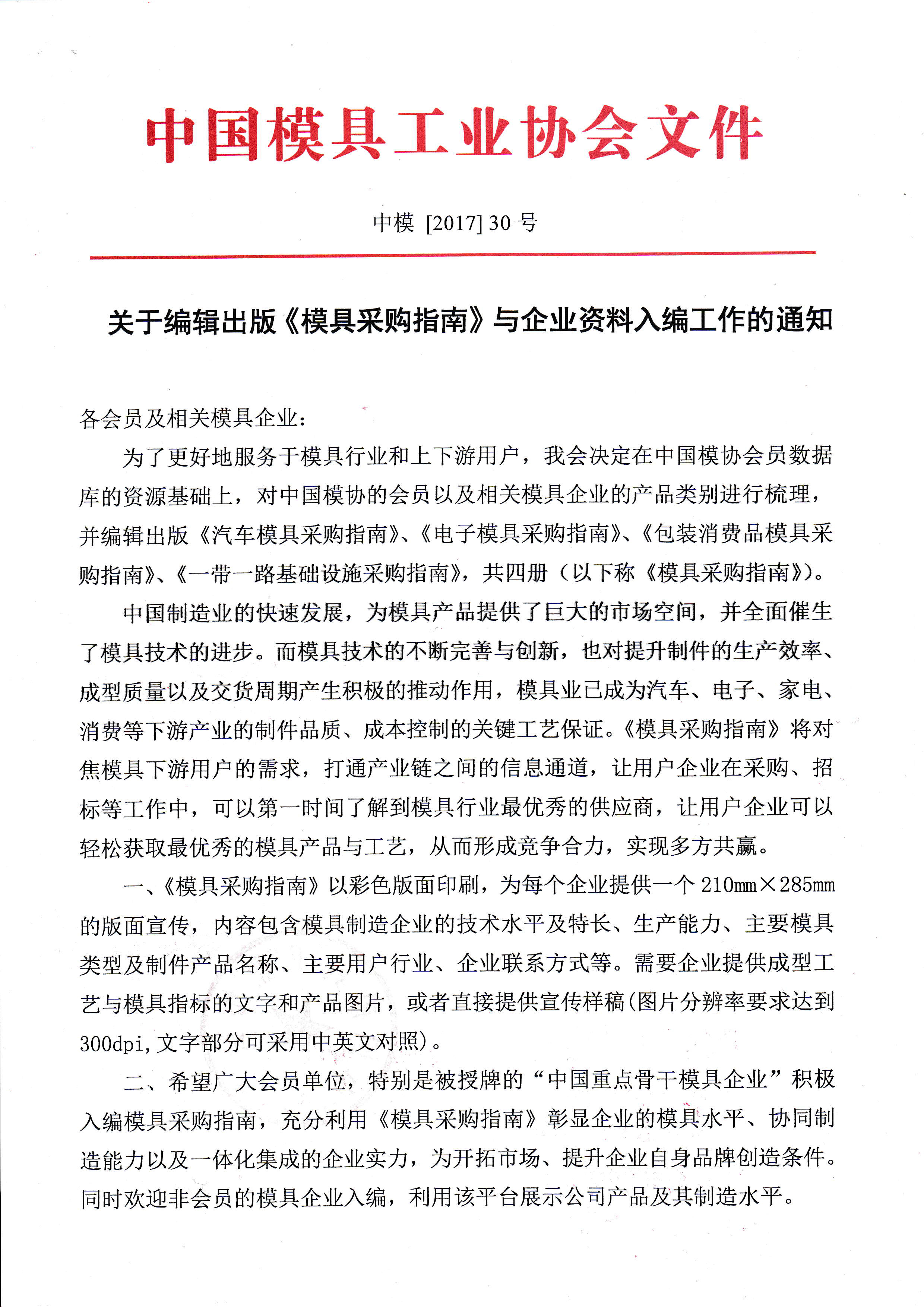 關于編輯出版《模具采購指南》與企業(yè)資料入編工作的通知