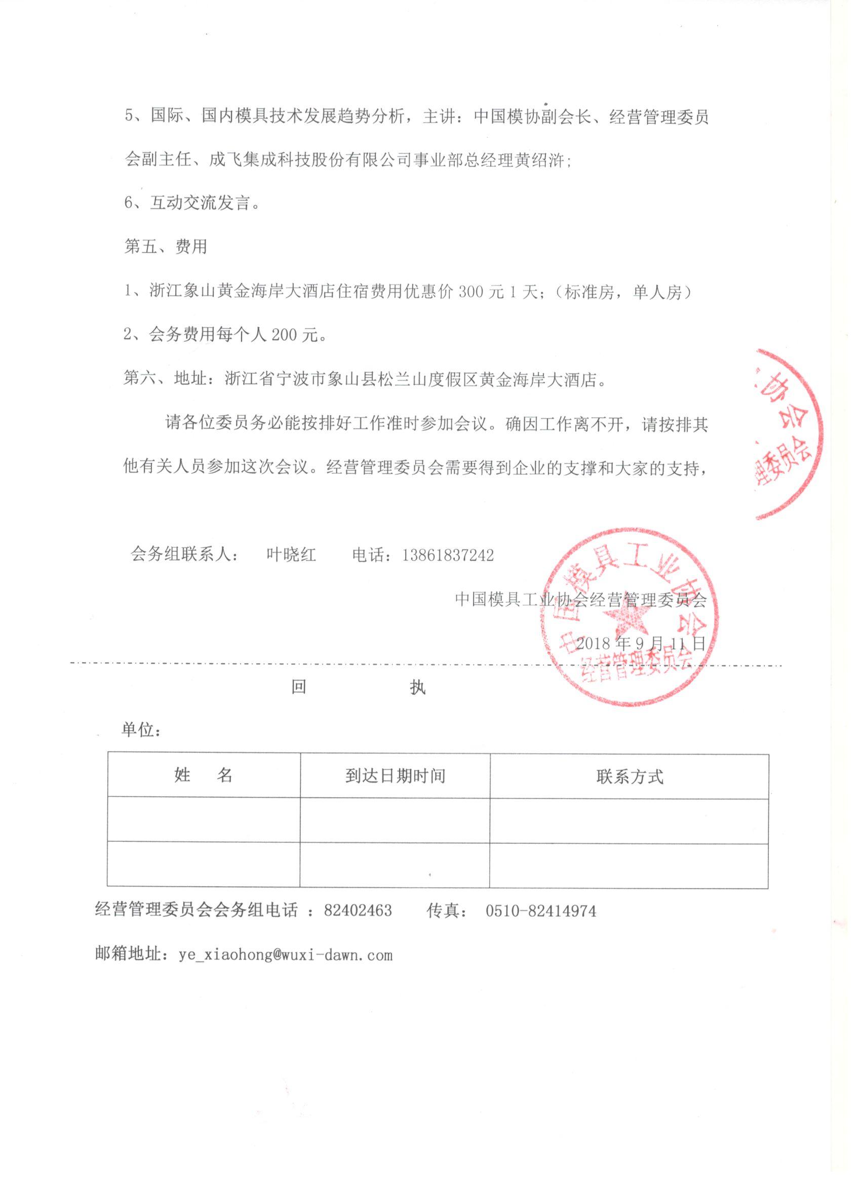 關(guān)于召開(kāi)2018年度中國(guó)模具工業(yè)協(xié)會(huì)經(jīng)營(yíng)管理委員會(huì)會(huì)議通知