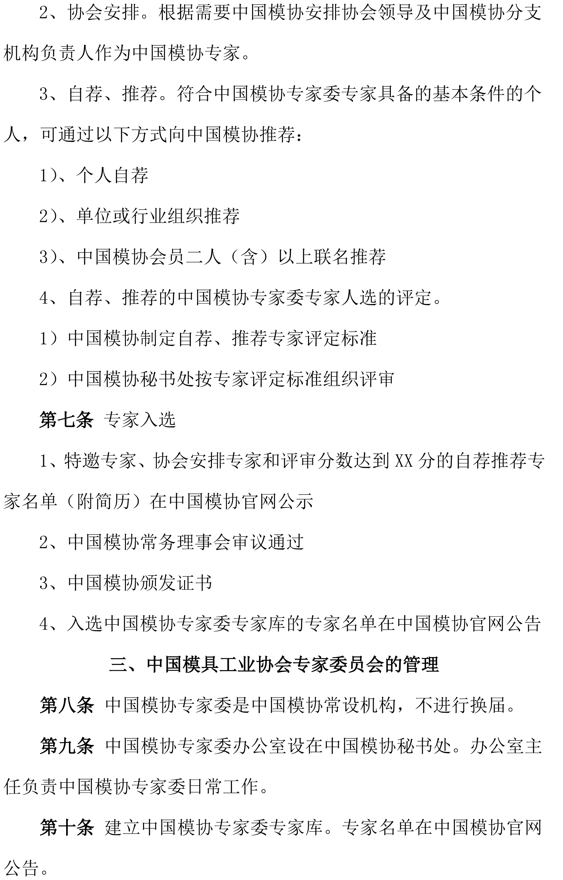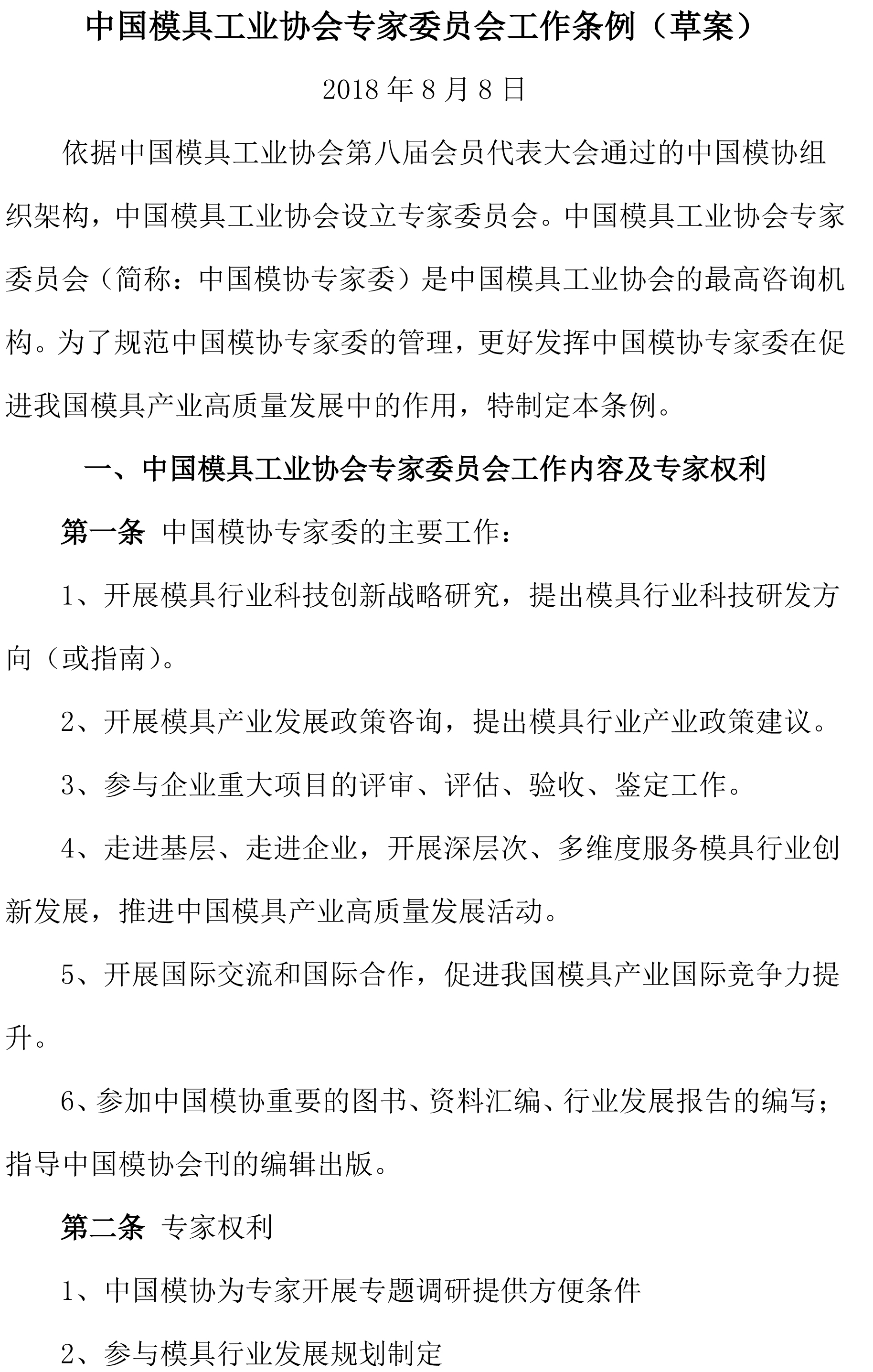 中國(guó)模具工業(yè)協(xié)會(huì)專家委員會(huì)工作條例(草案)