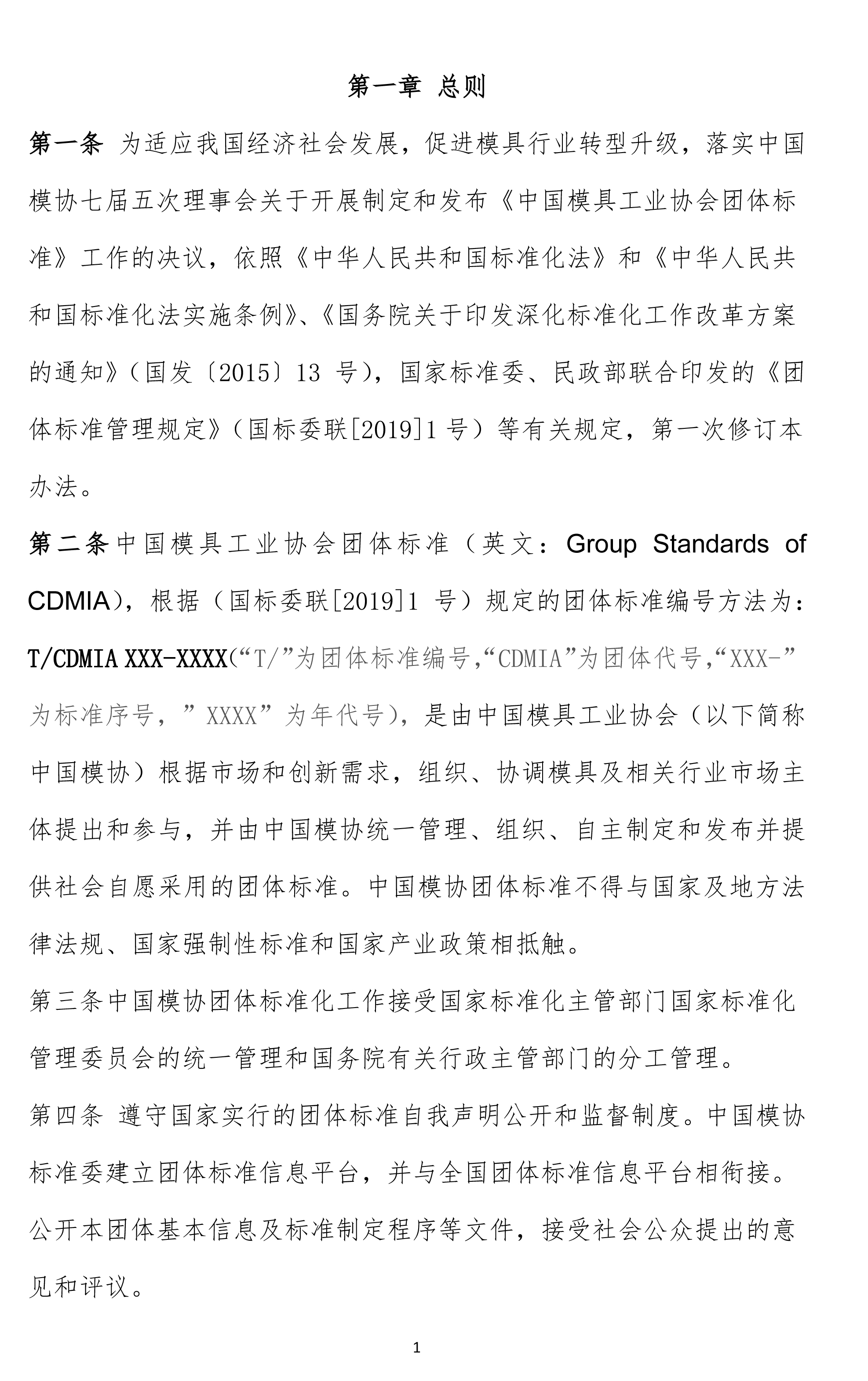 中國模具工業(yè)協(xié)會團(tuán)體標(biāo)準(zhǔn)管理辦法(試行)