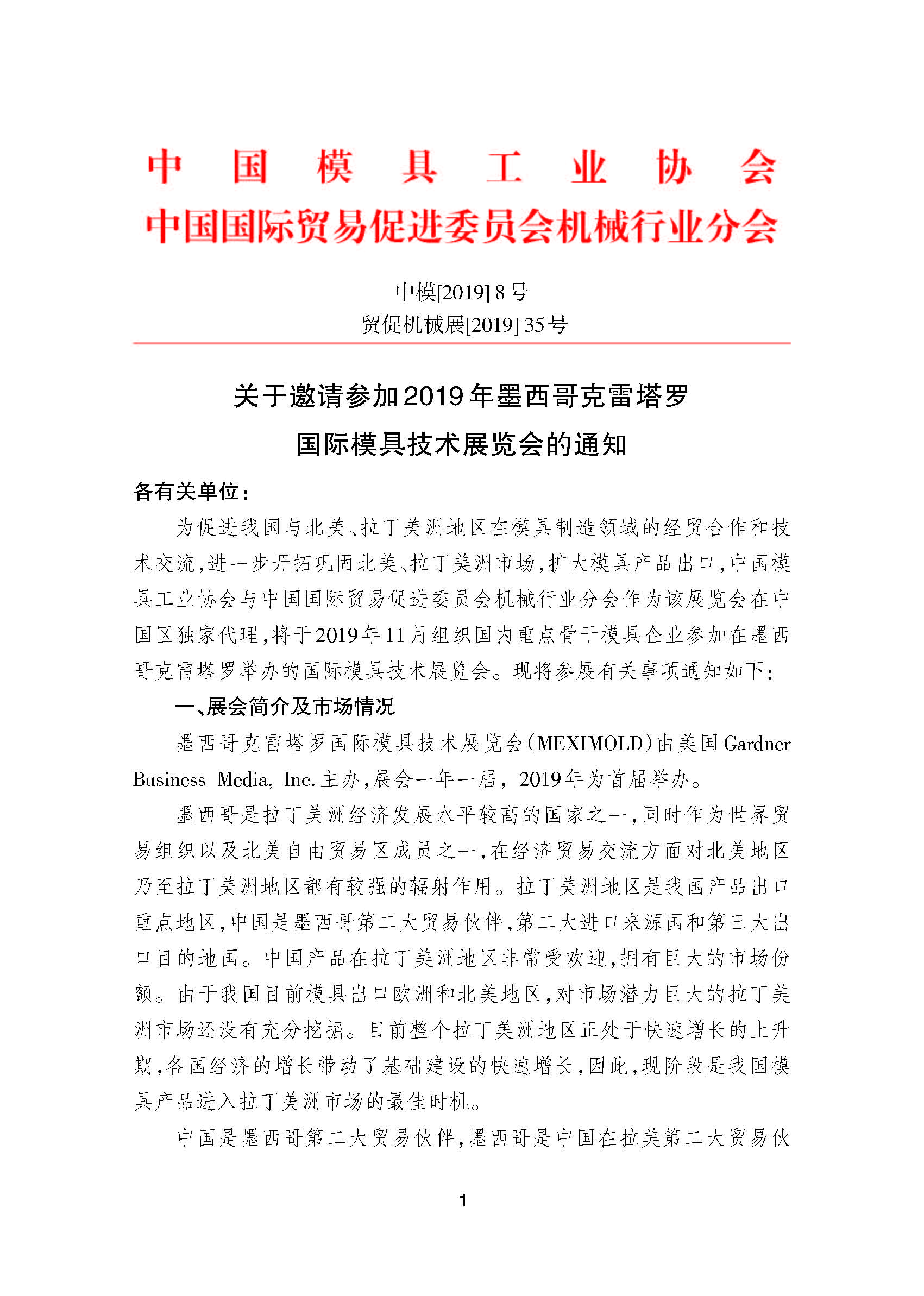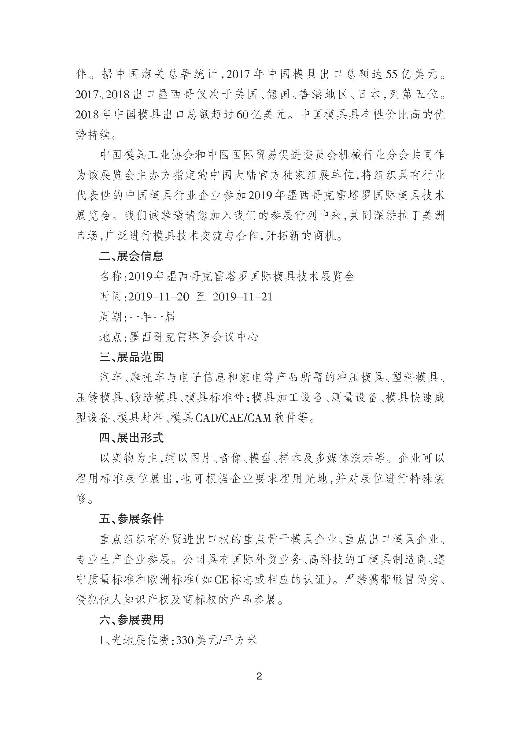 關(guān)于邀請參加2019年墨西哥克雷塔羅國際模具技術(shù)展覽會的通知