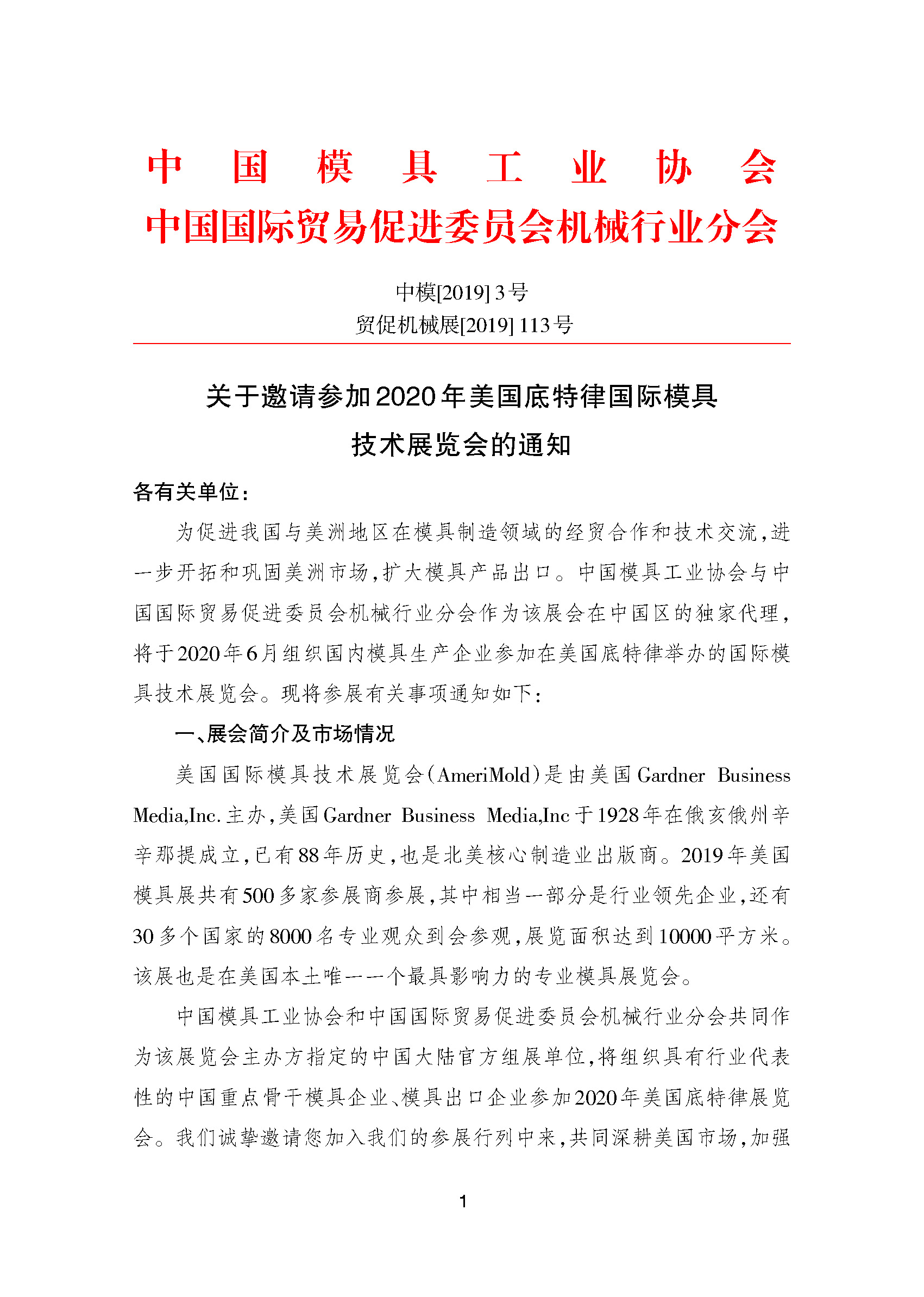 關(guān)于邀請參加2020年美國底特律國際模具技術(shù)展覽會的通知
