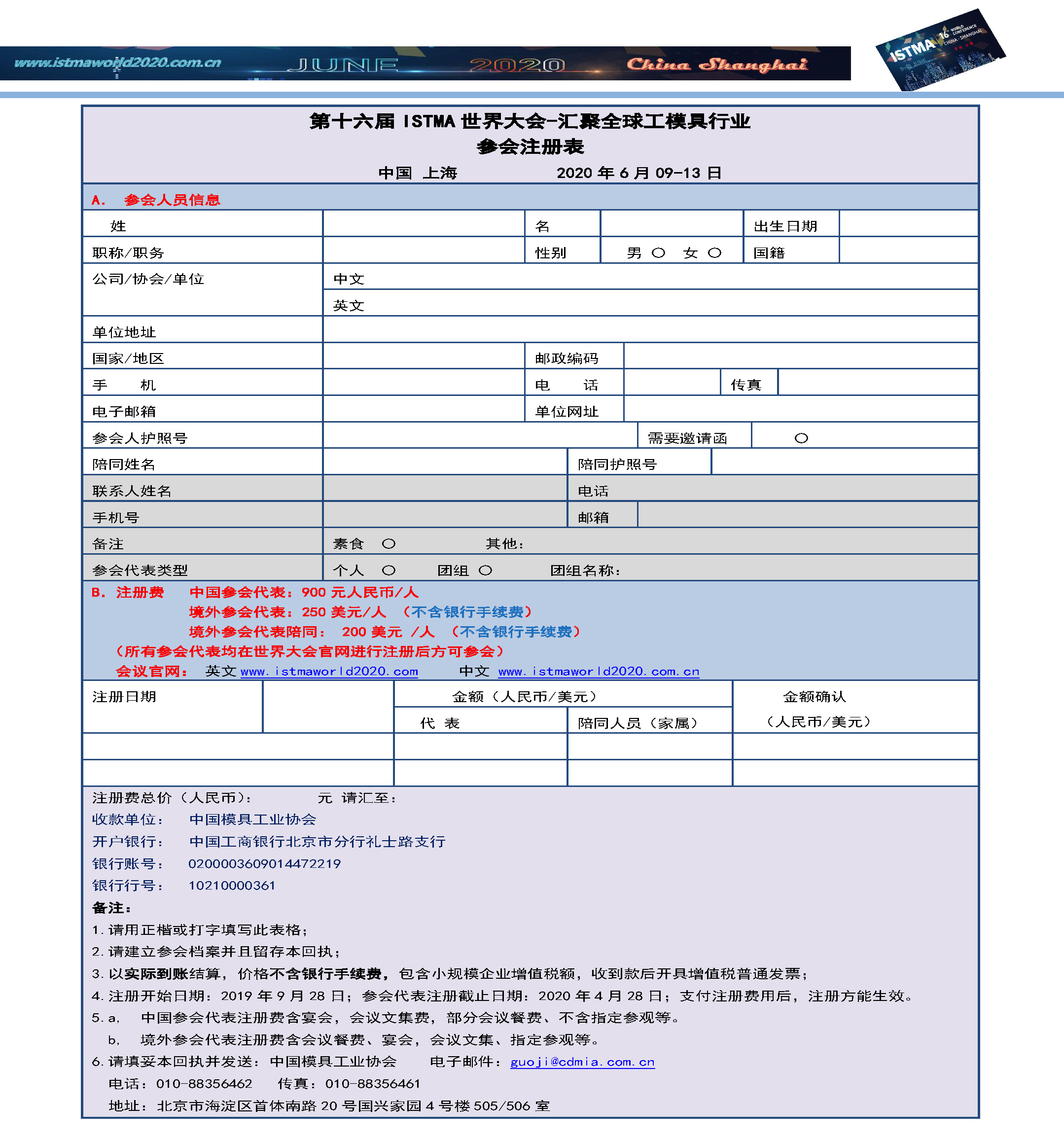 第十六屆ISTMA世界大會注冊表 中文.docx
