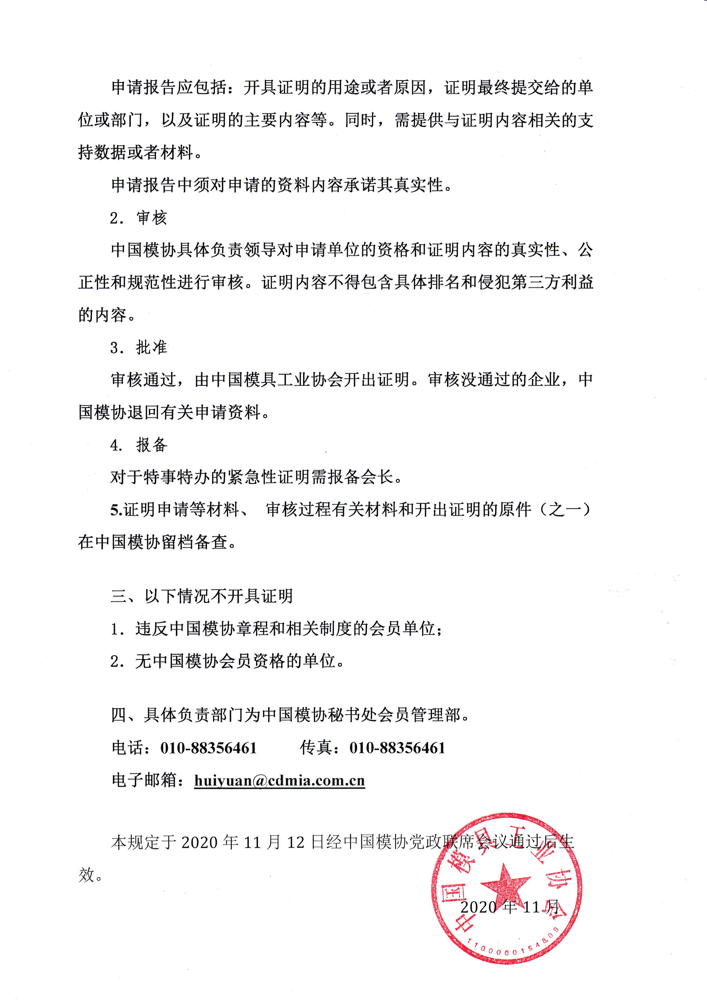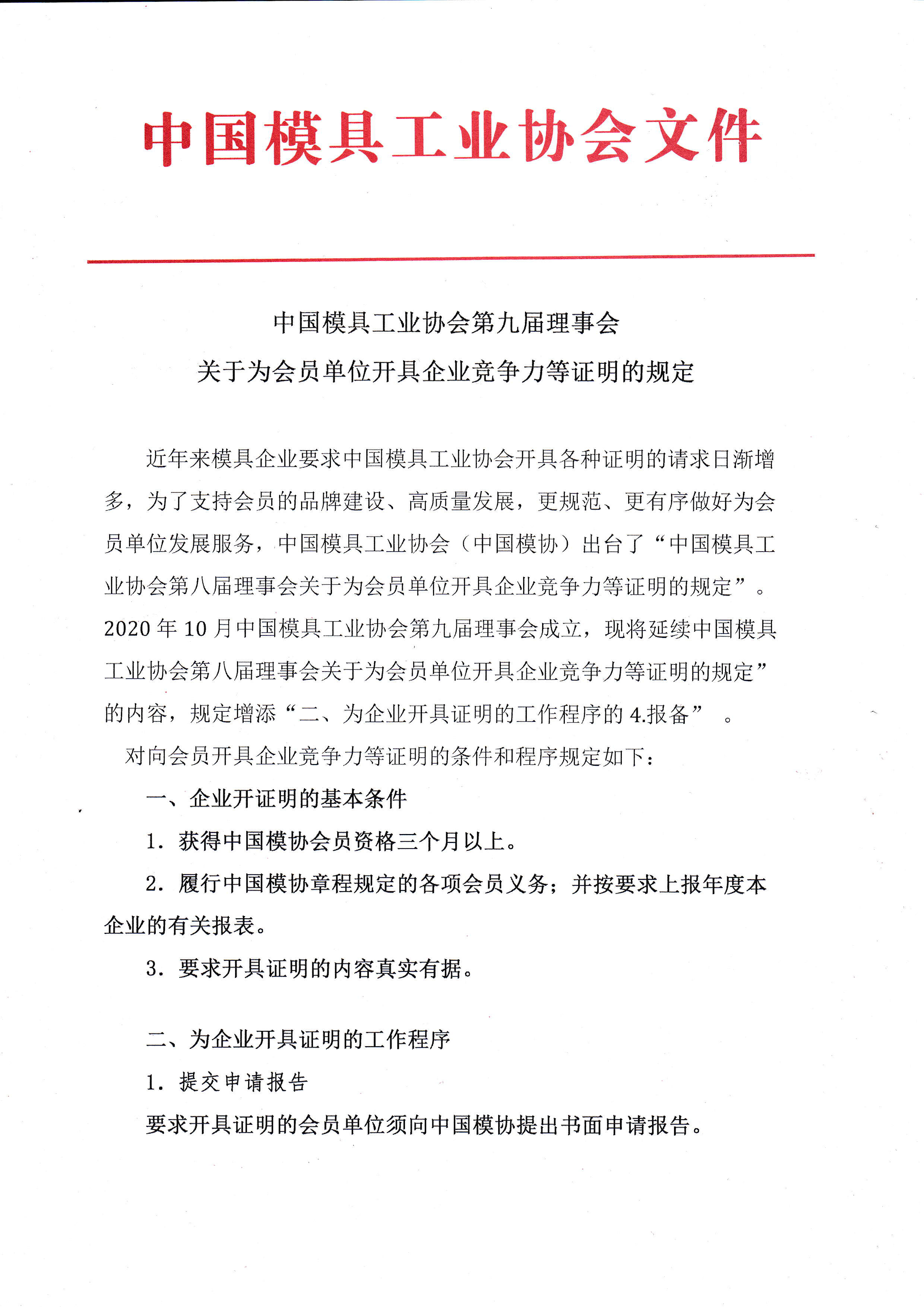 中國模具工業協會第九屆理事會關于為會員單位開具企業競爭力等證明的規定