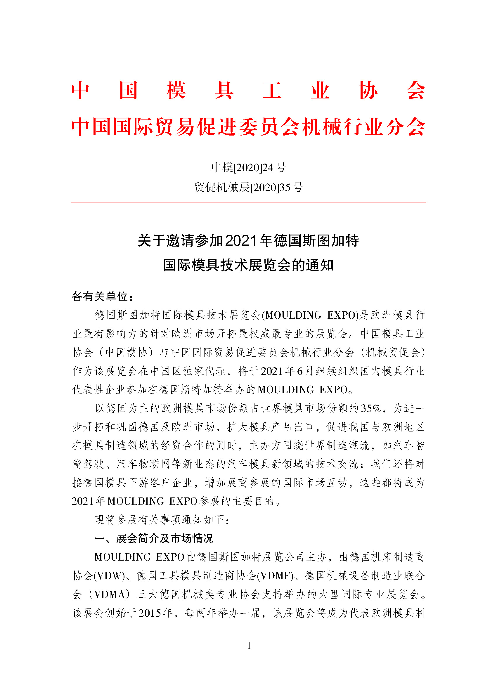 關于邀請參加2021年德國斯圖加特國際模具技術展覽會的通知