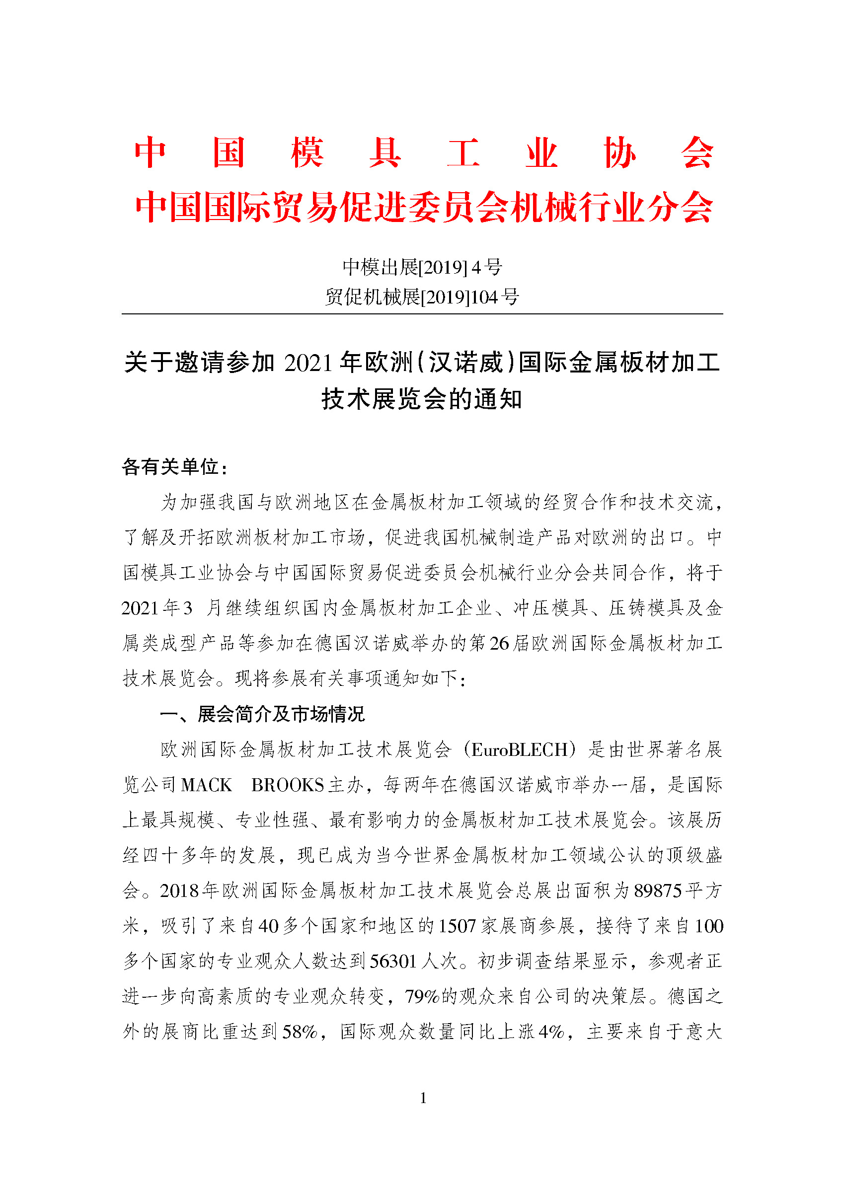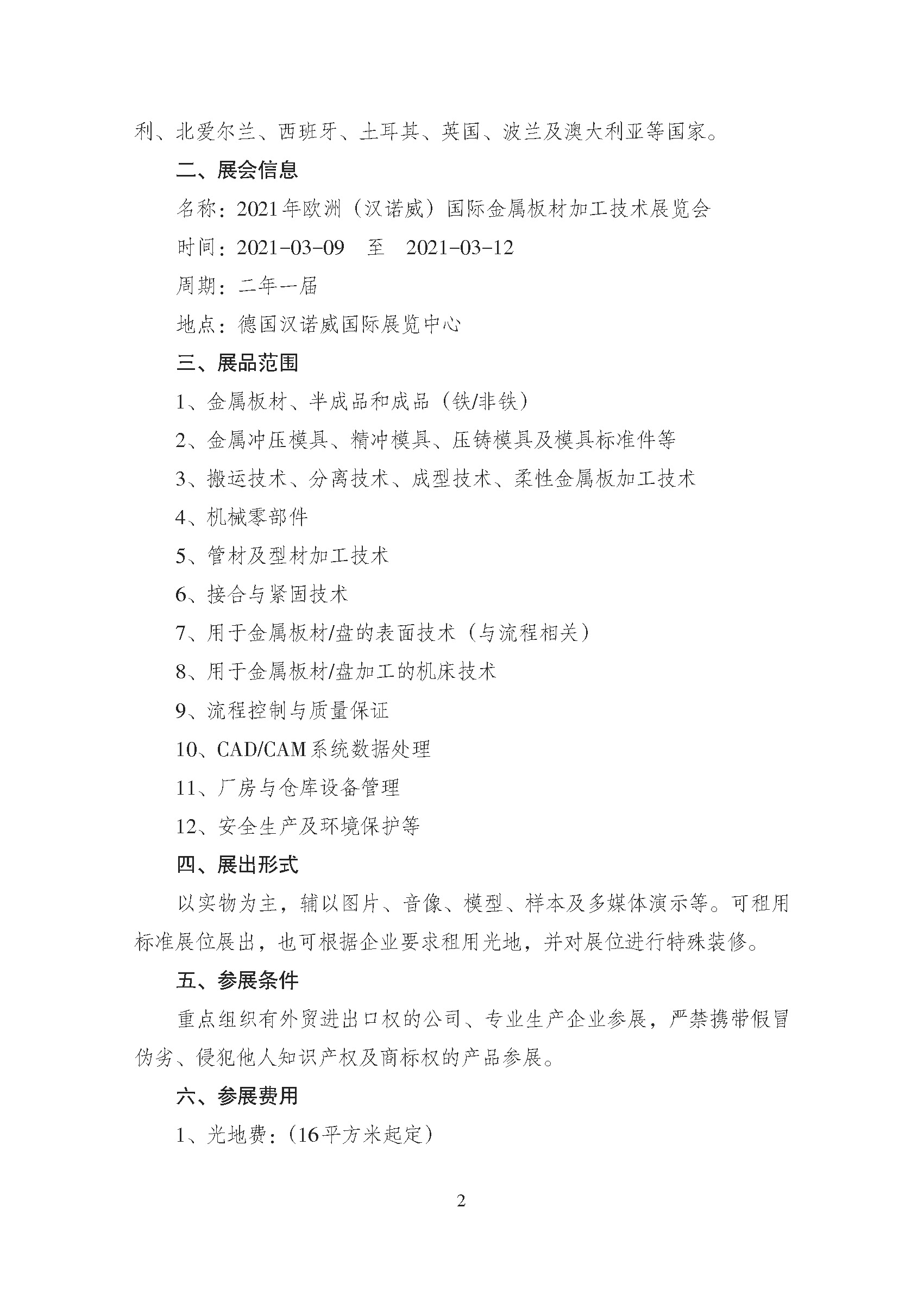 關于邀請參加2021年歐洲(漢諾威)國際金屬板材加工技術展覽會的通知