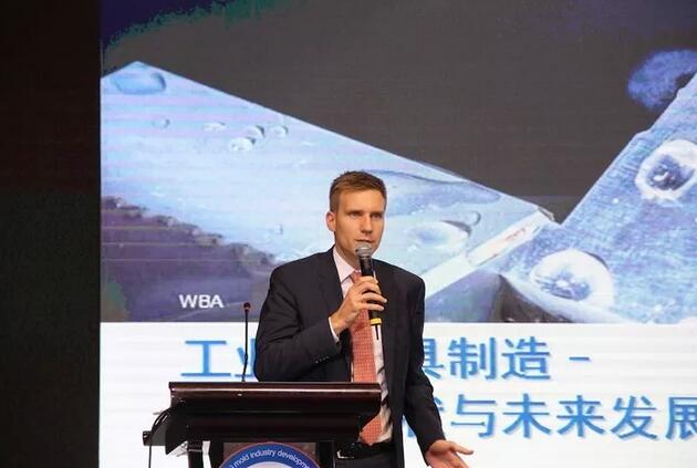 歐洲最大的應用科學研究機構之一的弗勞恩霍夫應用研究院(Fraunhofer)的模具專家——德國WBA亞琛模具研究院咨詢服務主管Dr.Micheal Salmen也驚喜亮相論壇現場,作了“工業化模具制造——德國的現狀與未來發展”主題演講