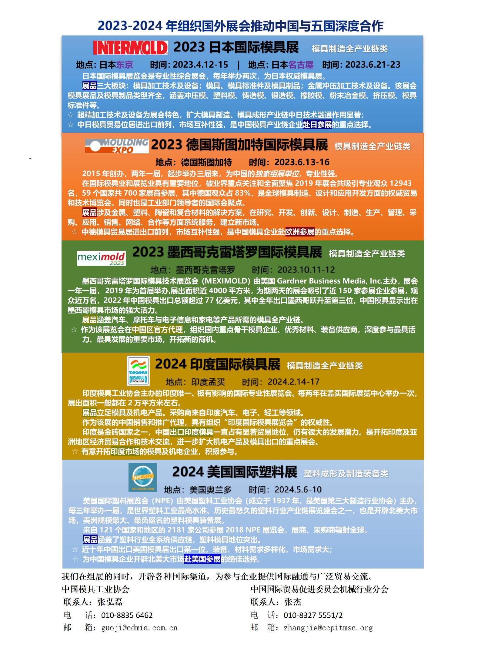 2023-2024年組織國外展會推動中國與五國深度合作