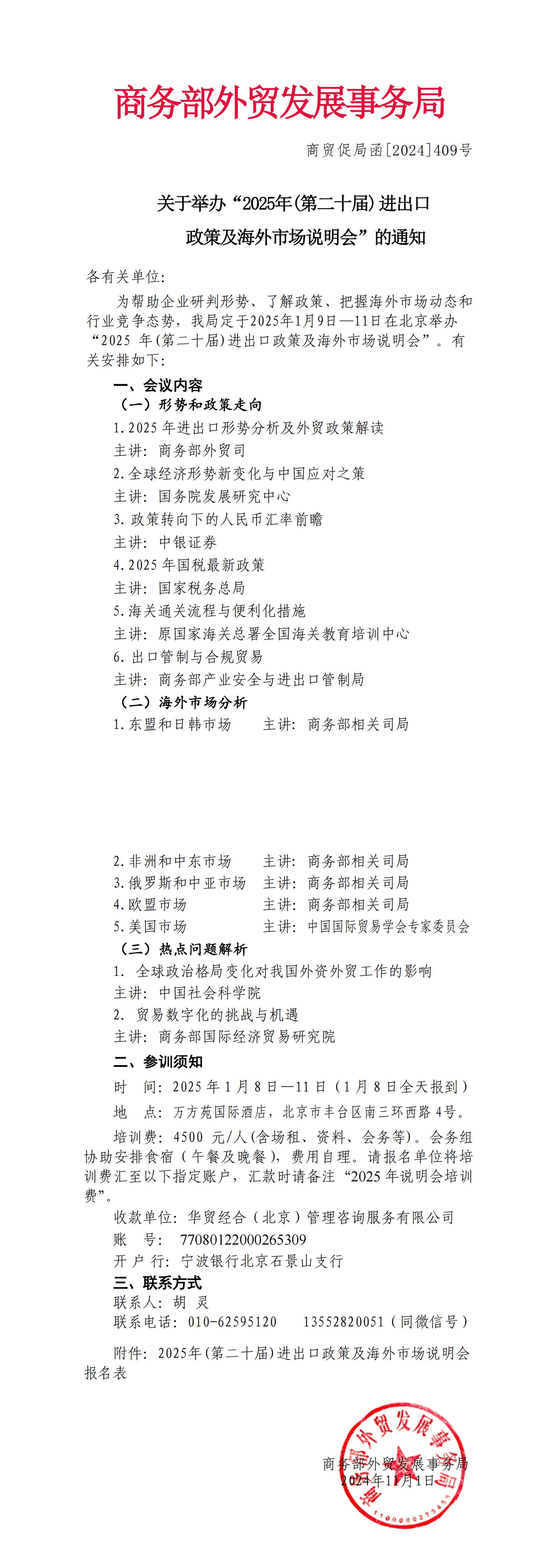 關于舉辦“2025年(第二十屆)進出口政策及海外市場說明會”的通知