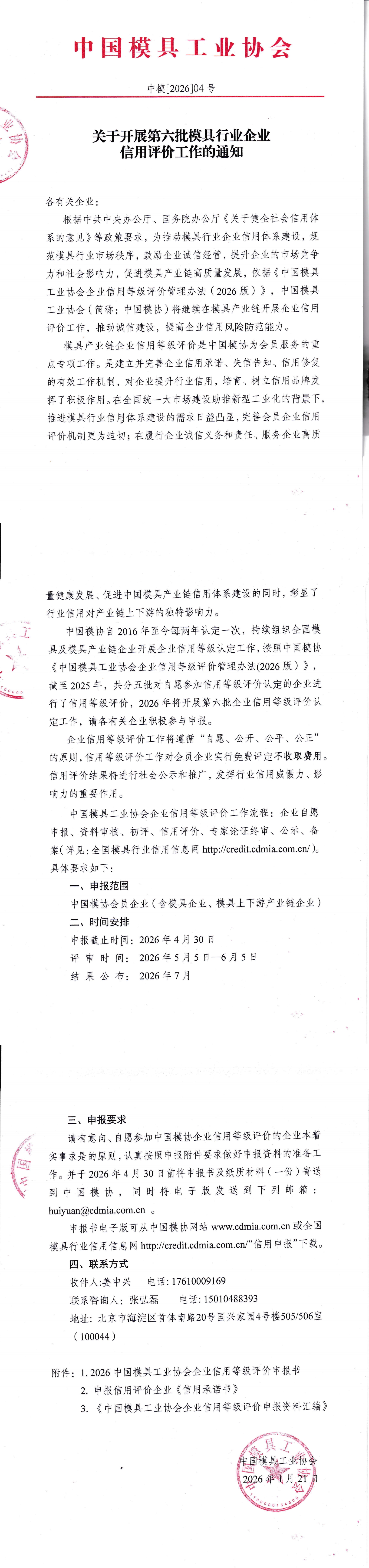 附件一:2026中國模具工業(yè)協(xié)會企業(yè)信用等級評價申報書.docx